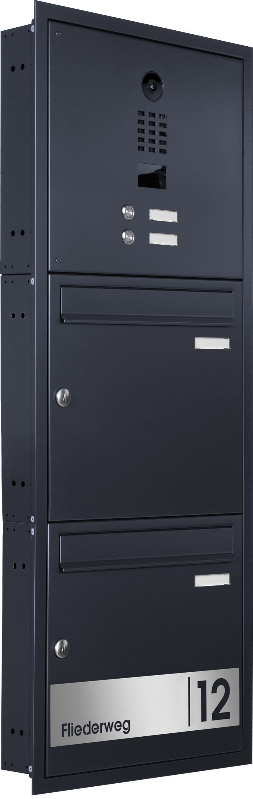 Der hochwertig verarbeitete Briefkasten OLEVA mit integrierter DoorBird Videotechnik ist für die Montage unterputz vorgesehen. Ein umlaufender Putzabdeckrahmen sorgt für einen sauberen Abschluss zur Wand.