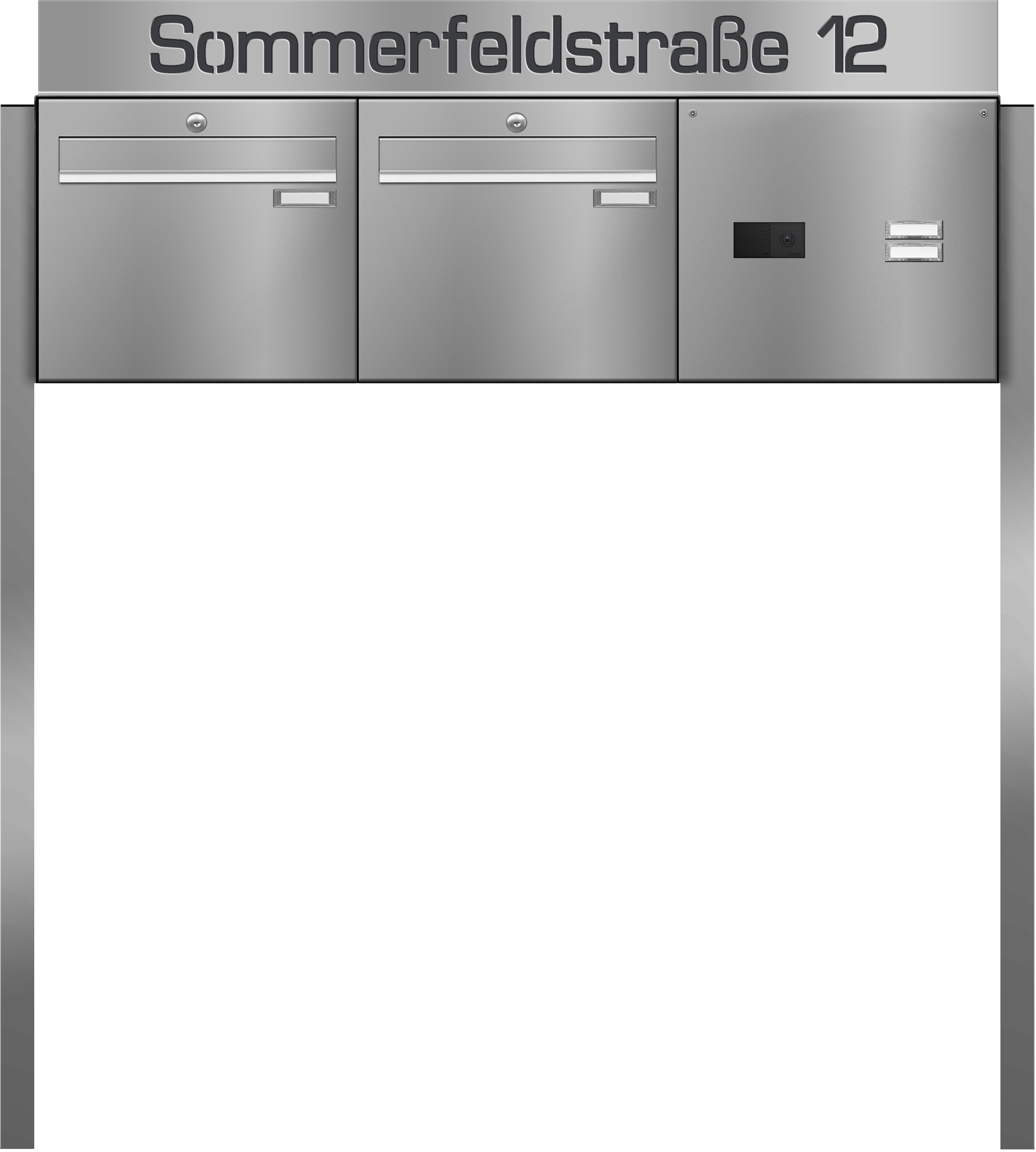 Die Anlage wird in sich komplett montiert geliefert (in einem Block), inkl. 2 Schlüsseln für jeden Briefkasten sowie Namensschild.
