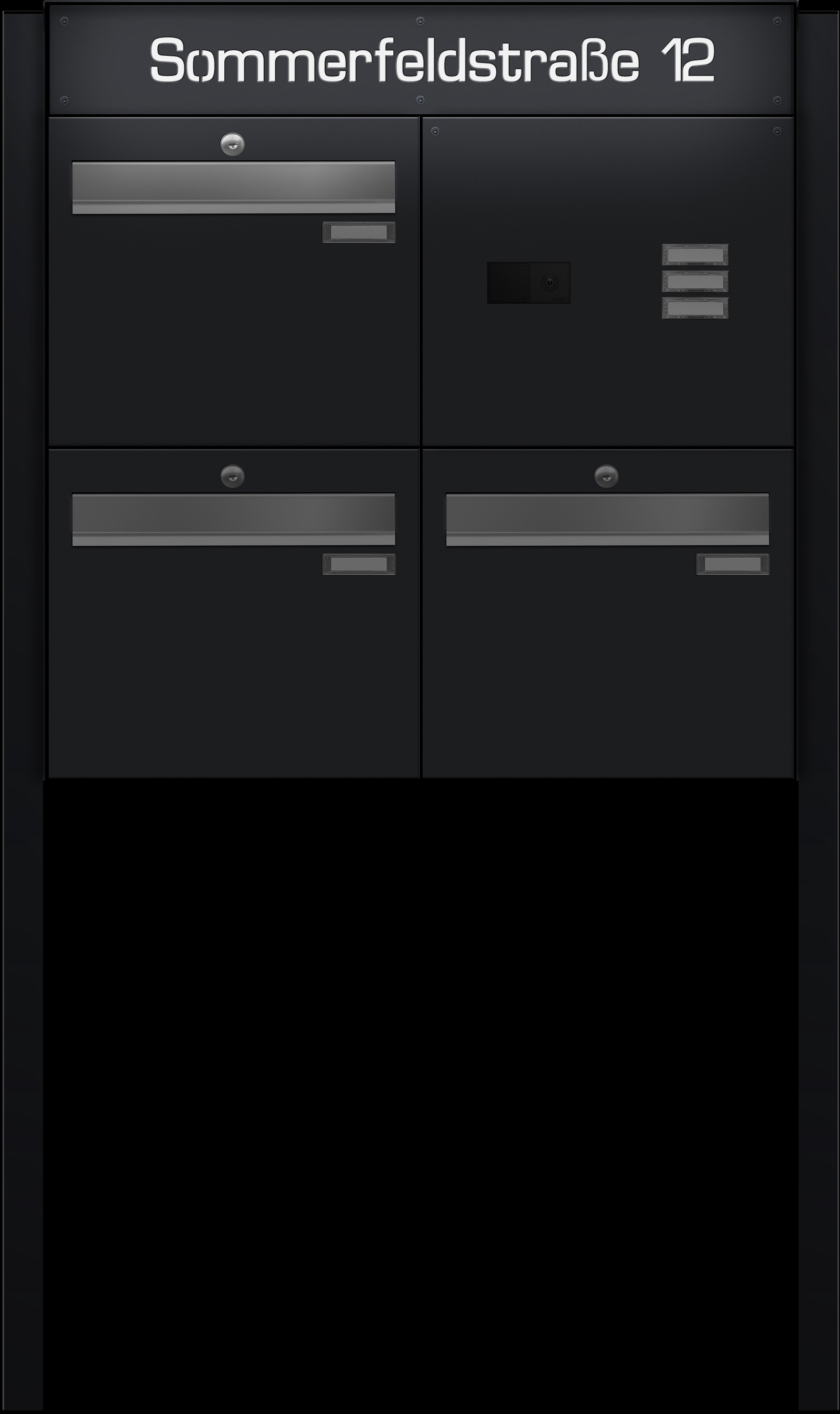 - Komfortable Postentnahme dank nach unten öffnender Tür mit Fangband sowie leicht austauschbaren Namensschildern.