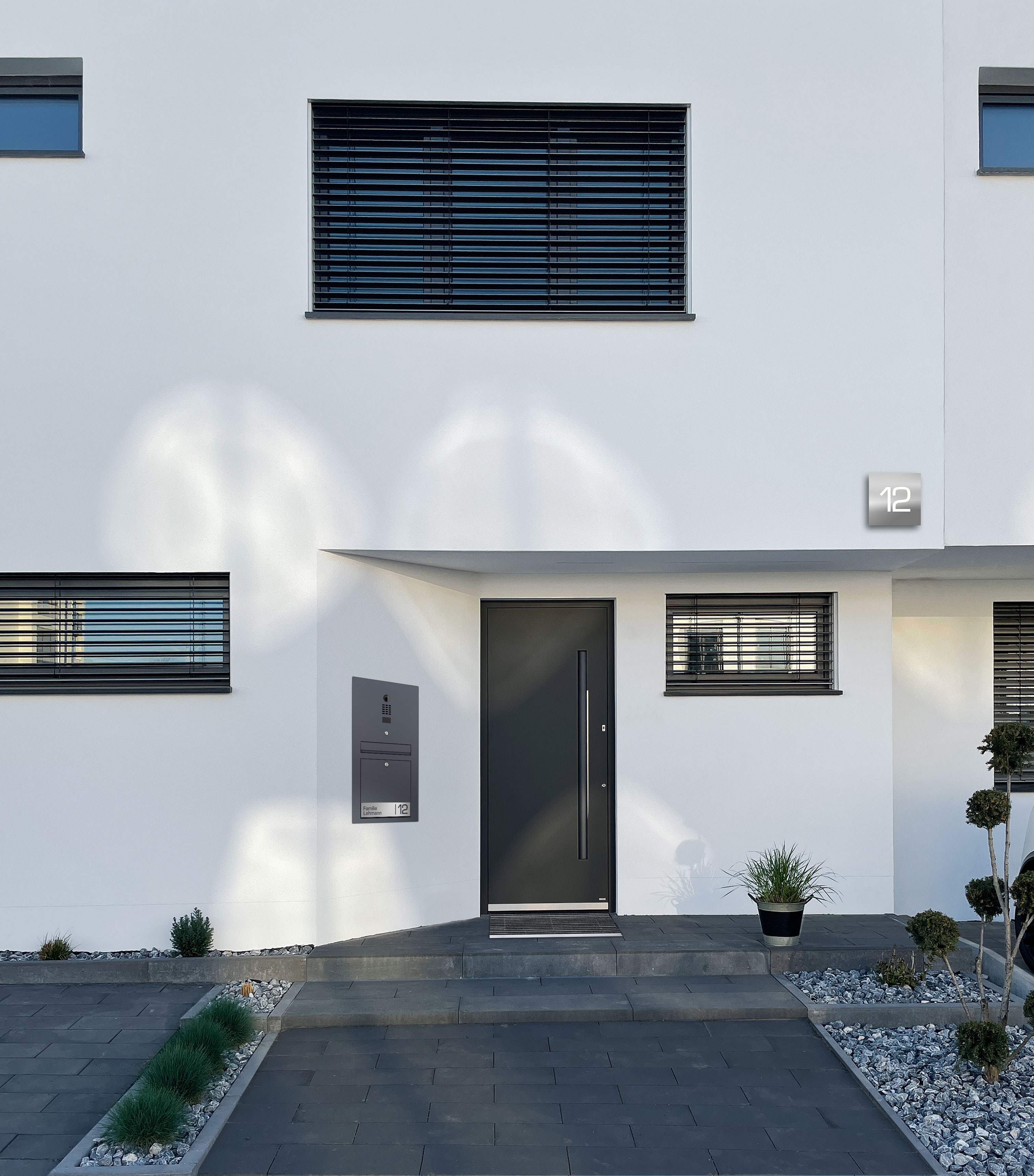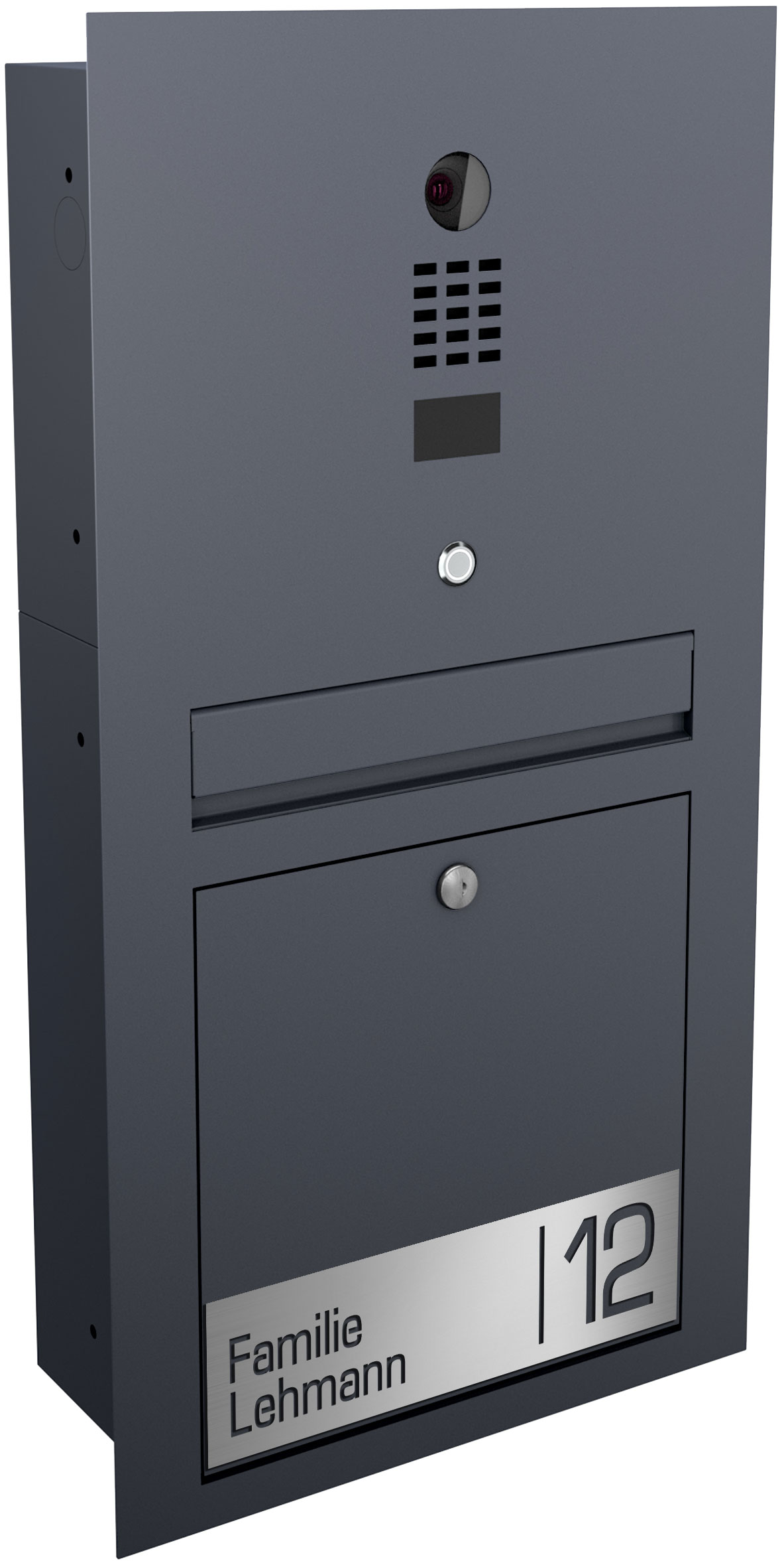 - Hochwertiger Unterputz-Briefkasten mit flächenbündiger Soft-Close-Einwurfklappe, umlaufendem Putzabdeckrahmen und vandalismussicherer Edelstahlfront (1,5 mm, pulverlackiert).