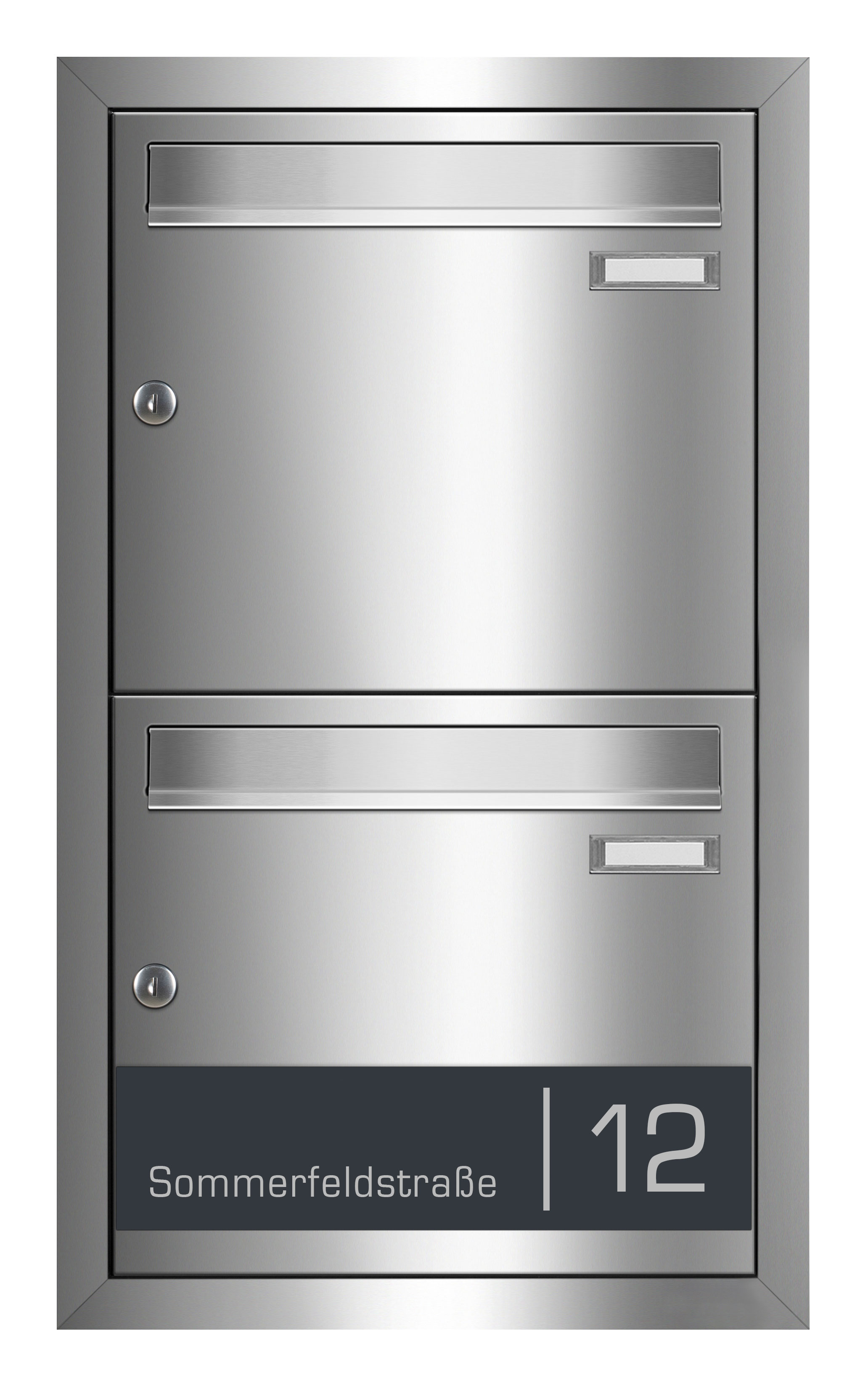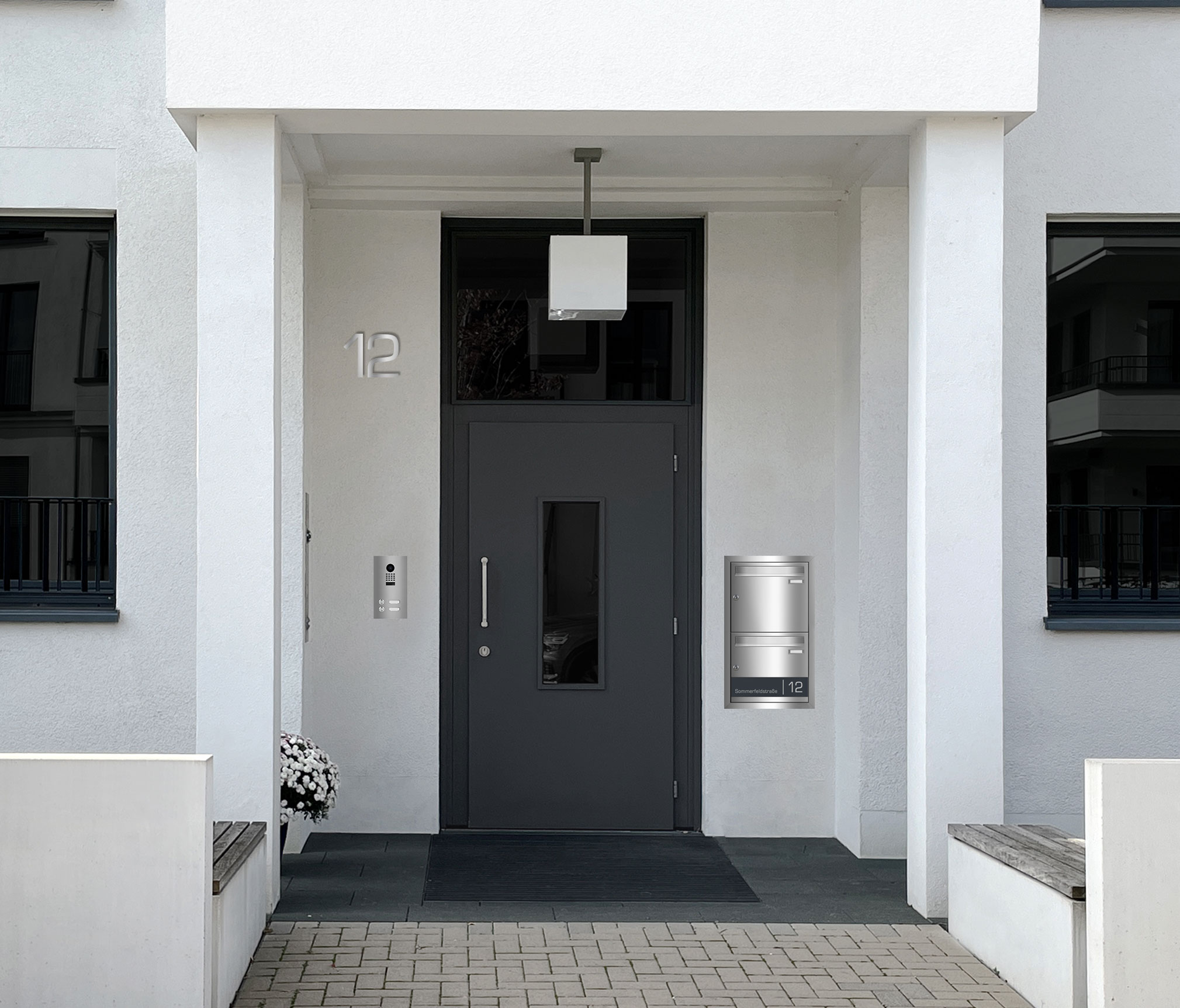 Bei der Frabox® Lasergravur wird Ihr Name und Ihre Hausnummer aus der lackierten Namensschildplatte ausgelasert, wodurch der Edelstahluntergrund zum Vorschein kommt. Anschließend wird die Namensschildplatte mithilfe von speziell entwickelten Schablonen millimetergenau angebracht. Dieser Vorgang erfordert besondere Sorgfalt seitens erfahrener Mitarbeiter, um ein perfektes Ergebnis zu erzielen.