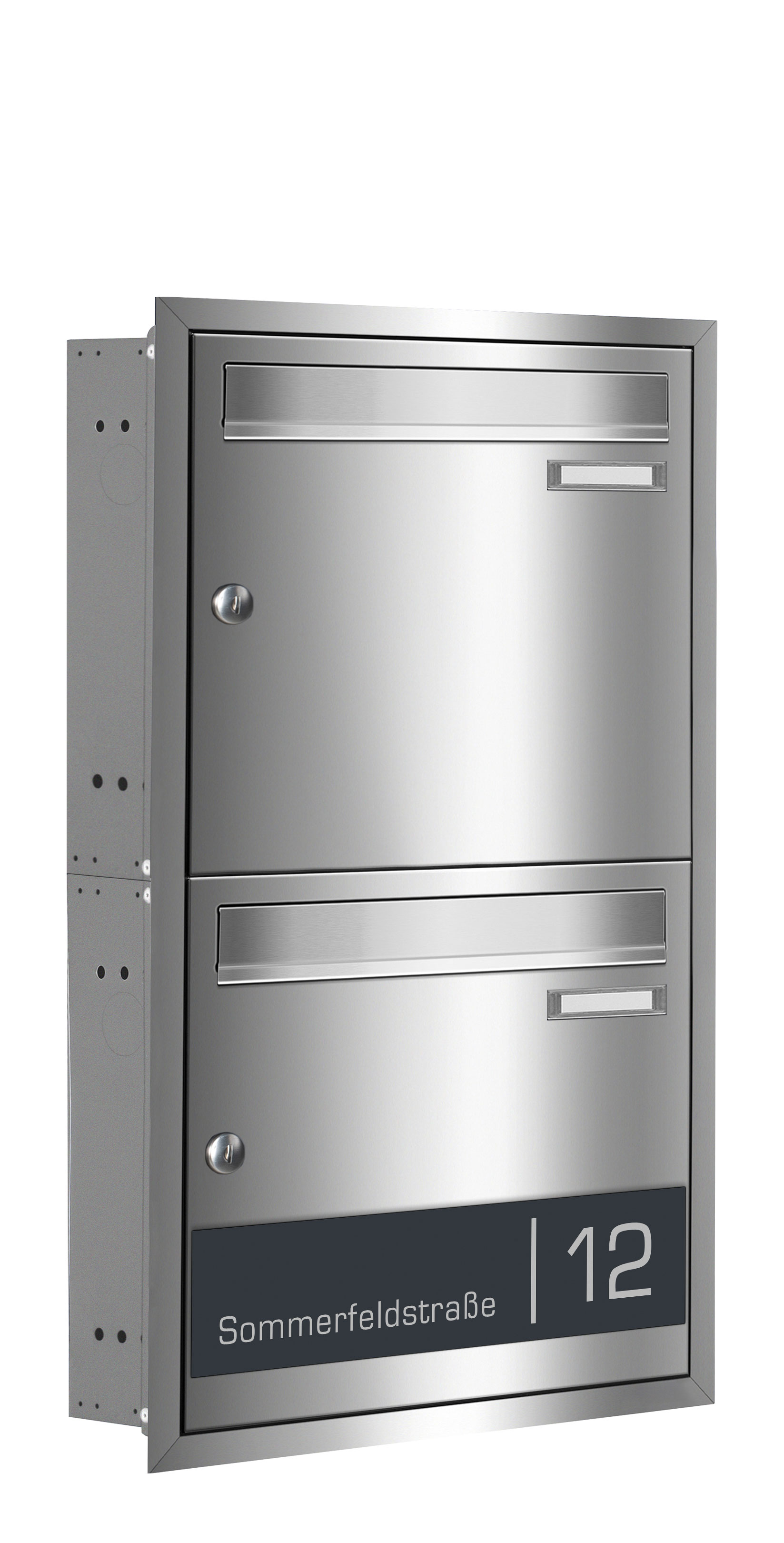 Der hochwertig verarbeitete Briefkasten OLEVA ist für die Montage unterputz vorgesehen. Ein umlaufender Putzabdeckrahmen sorgt für einen sauberen Abschluss zur Wand.
