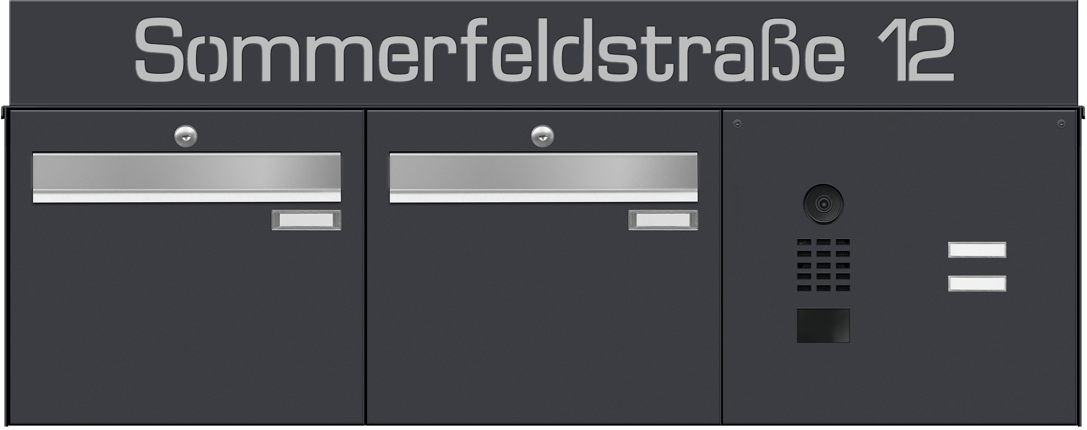 Die Anlage wird in sich komplett montiert geliefert (in einem Block), inkl. 2 Schlüsseln für jeden Briefkasten sowie Namensschild.