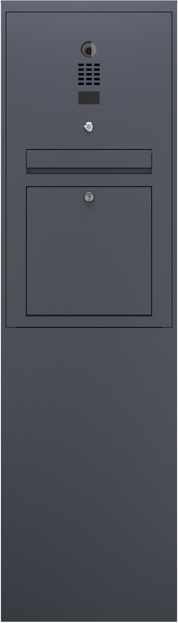 Standsäule und Briefkastenfront aus Edelstahl, pulverlackiert