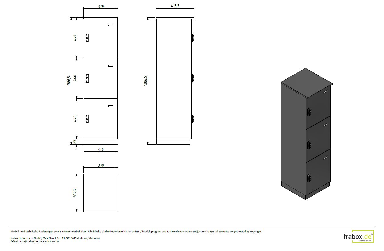 Größe je Paketfach: 370 x 440 x 380 mm (BxHxT)