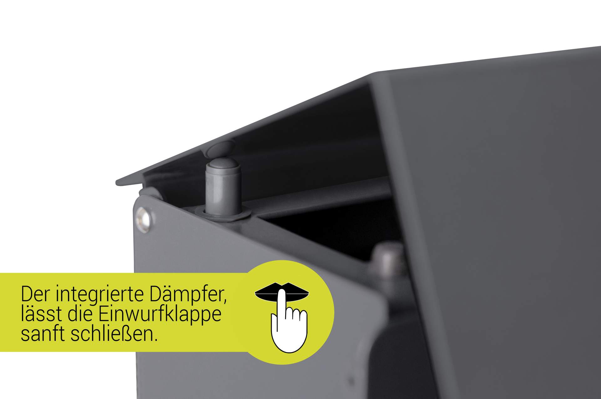 - Zylinderschloss elegant verborgen unter der Einwurfklappe – geschützt vor Schmutz und Nässe.