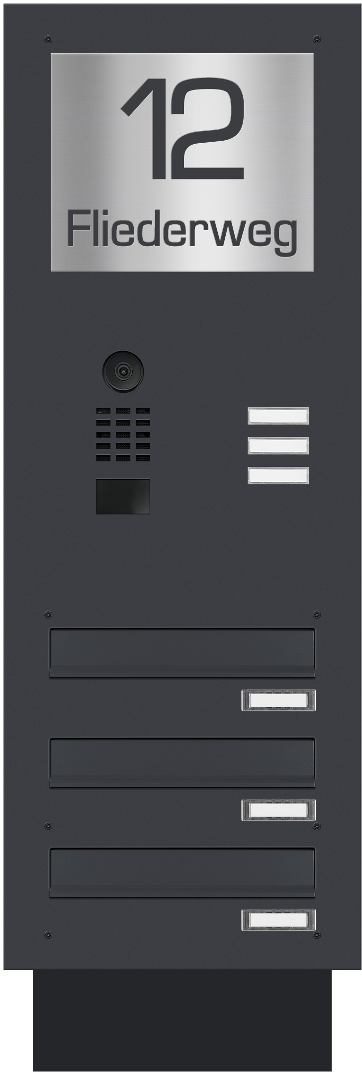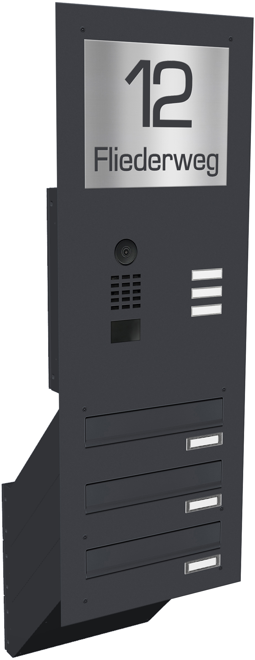 Die Anlage wird komplett montiert in einem Block geliefert. Im Lieferumfang sind 2 Schlüssel pro Briefkasten sowie ein Namensschild enthalten.