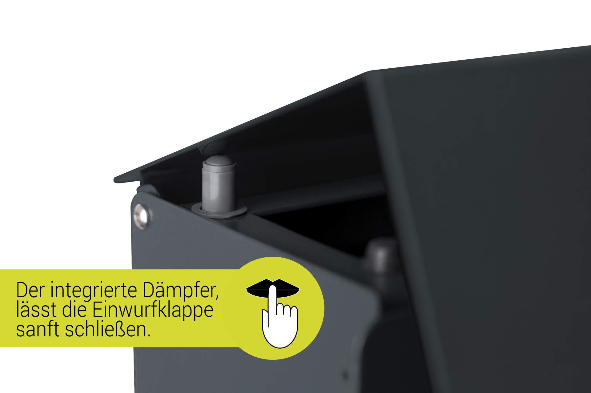 Der Briefkasten entspricht der aktuellen EN Norm 13724. Geschütztes Design: eingetragen beim Deutschen Patent- und Markenamt sowie beim Amt der Europäischen Union für geistiges Eigentum.
