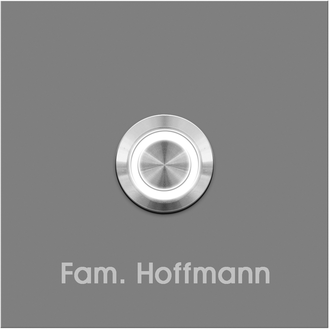 Diese im RAL-Farbton ausgeführte und mit LED-Beleuchtung versehene Klingelplatte wirkt äußert edel! Der Taster ist mit einer weißer LED-Beleuchtung versehen, die über den normalen Klingelstrom versorgt wird (minimale Stromaufnahme von 50mA). Der Klingeltaster selbst ist aus hochwertigem Edelstahl gefertigt.