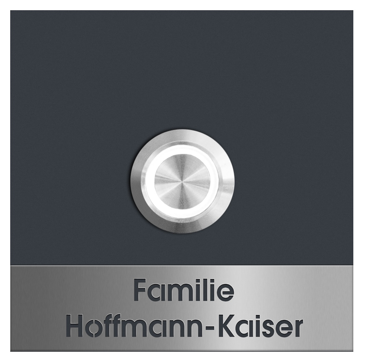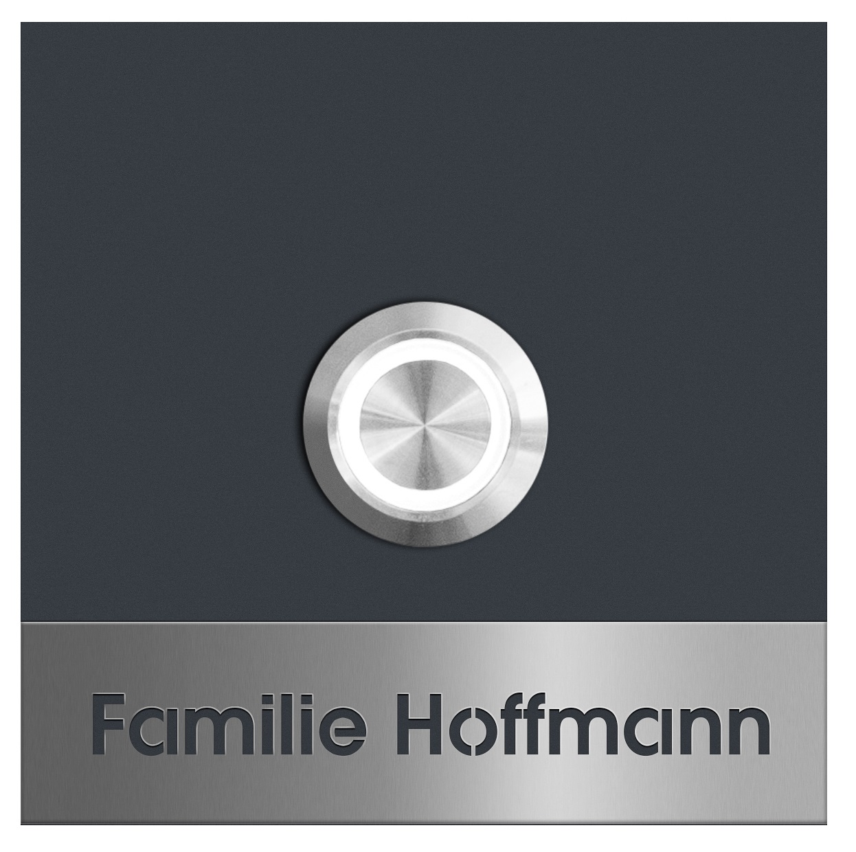 Diese im RAL-Farbton ausgeführte und mit LED-Beleuchtung versehene Klingelplatte wirkt äußert edel! Der Taster ist mit einer weißer LED-Beleuchtung versehen, die über den normalen Klingelstrom versorgt wird (minimale Stromaufnahme von 50mA). Der Klingeltaster selbst ist aus hochwertigem Edelstahl gefertigt.