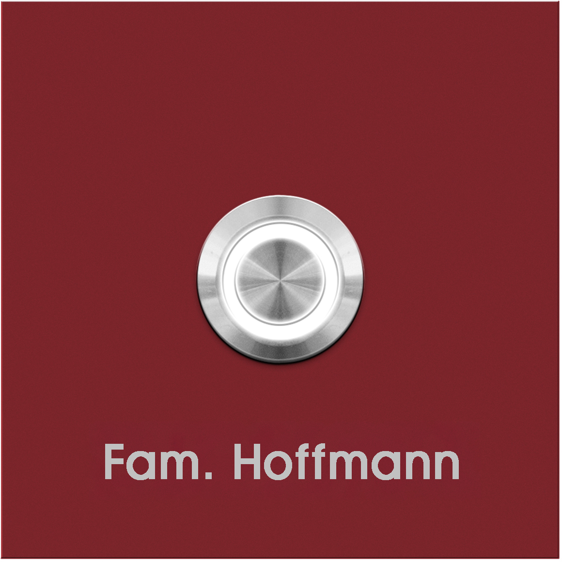 Diese im RAL-Farbton ausgeführte und mit LED-Beleuchtung versehene Klingelplatte wirkt äußert edel! Der Taster ist mit einer weißer LED-Beleuchtung versehen, die über den normalen Klingelstrom versorgt wird (minimale Stromaufnahme von 50mA). Der Klingeltaster selbst ist aus hochwertigem Edelstahl gefertigt.