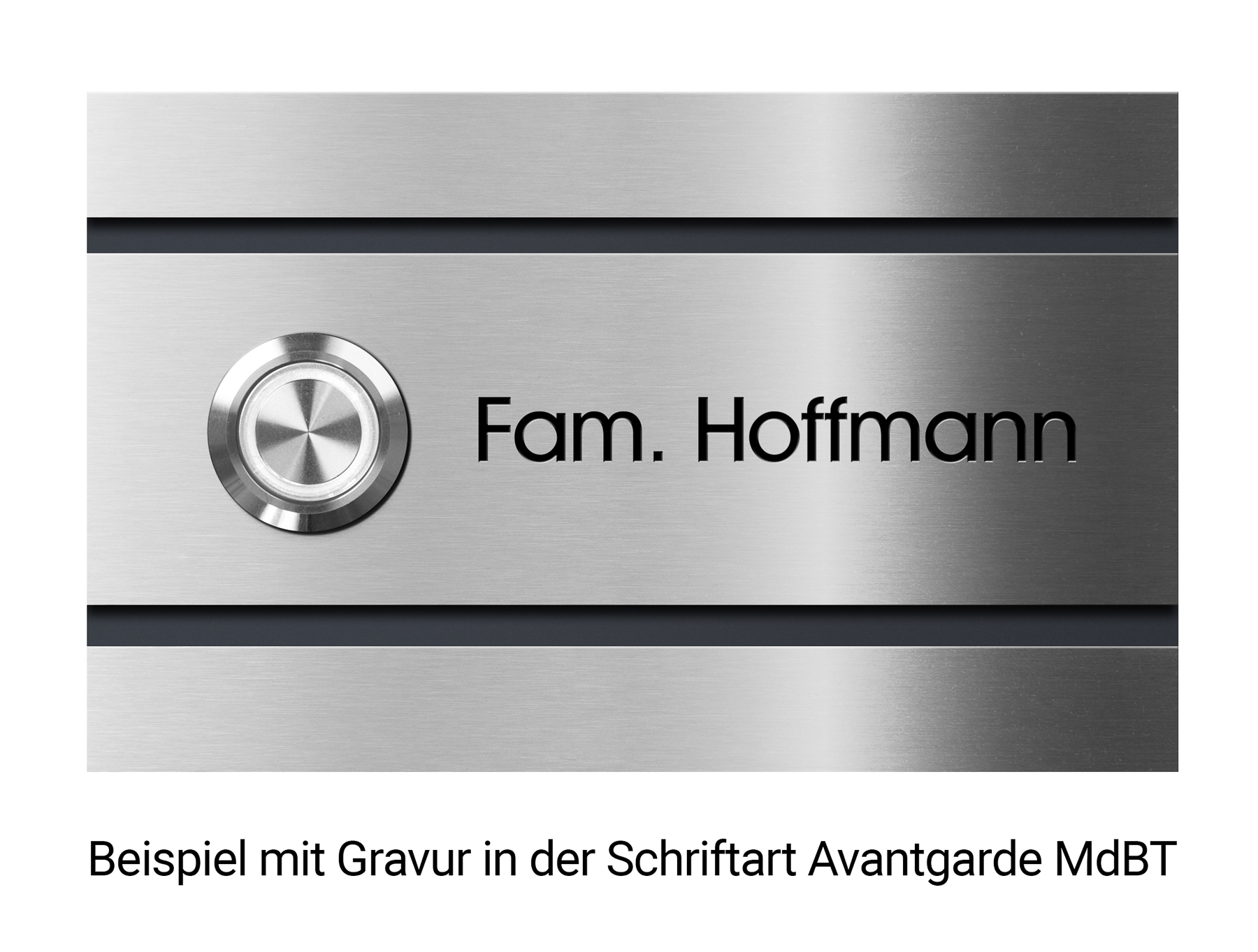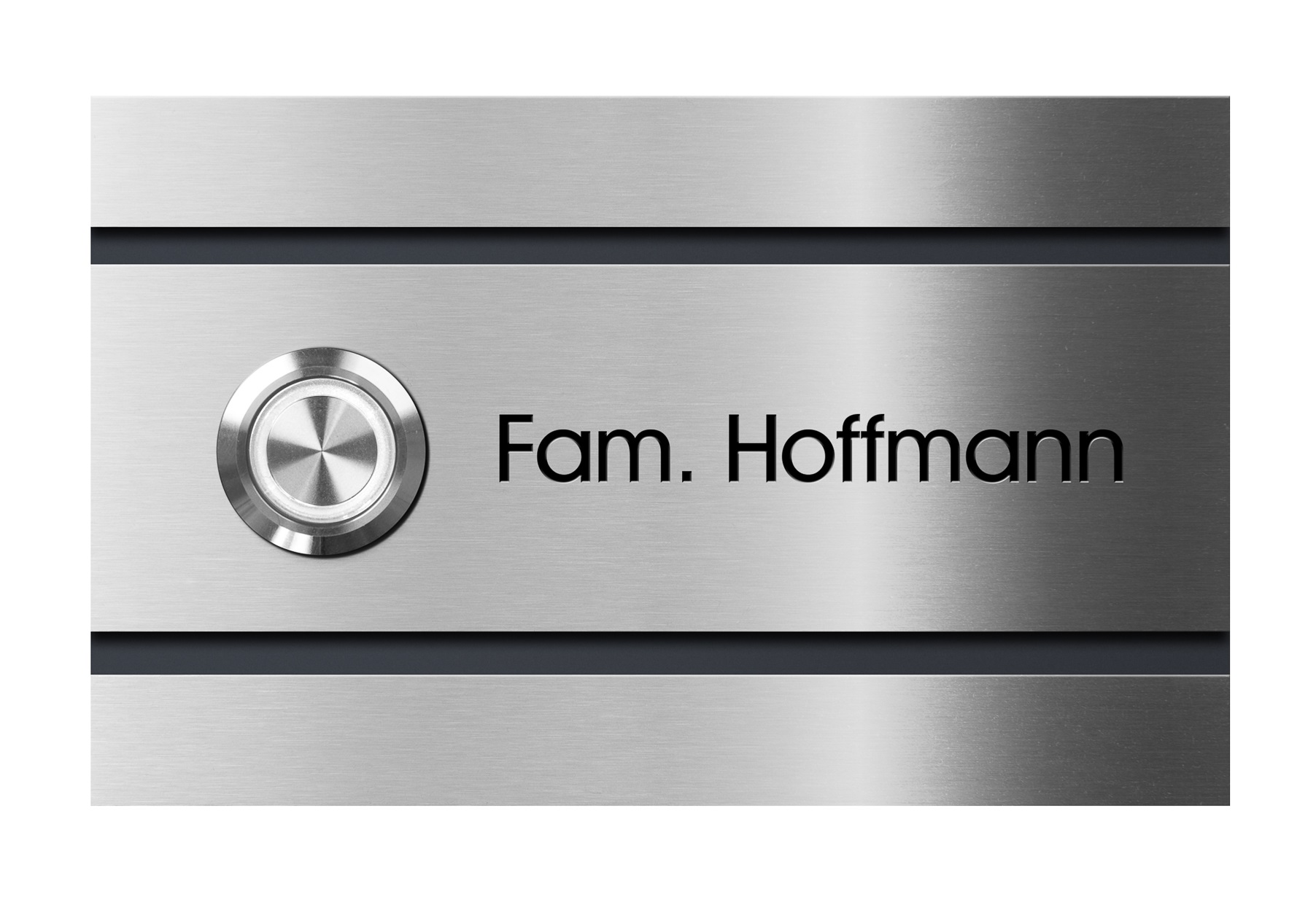 Diese in Edelstahl ausgeführte und mit LED-Beleuchtung versehene Klingelplatte wirkt durch die Hinterlegung in RAL 7016 anthrazitgrau äußert edel! Der Taster ist mit einer weißer LED-Beleuchtung versehen, die über den normalen Klingelstrom versorgt wird (minimale Stromaufnahme von 50mA). Der Klingeltaster selbst ist aus hochwertigem Edelstahl gefertigt.