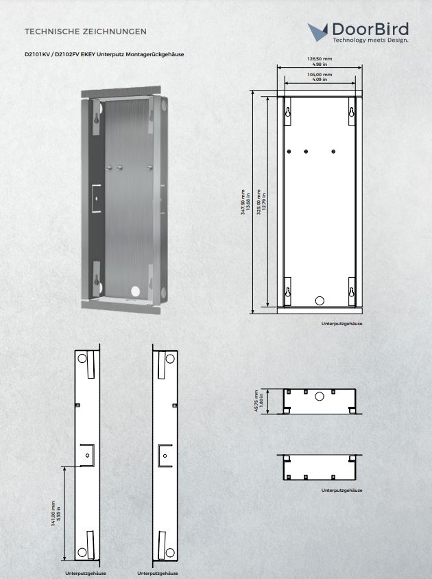 DoorBird D2101KV/D2102FV EKEY Montagerückgehäuse, Edelstahl V2A