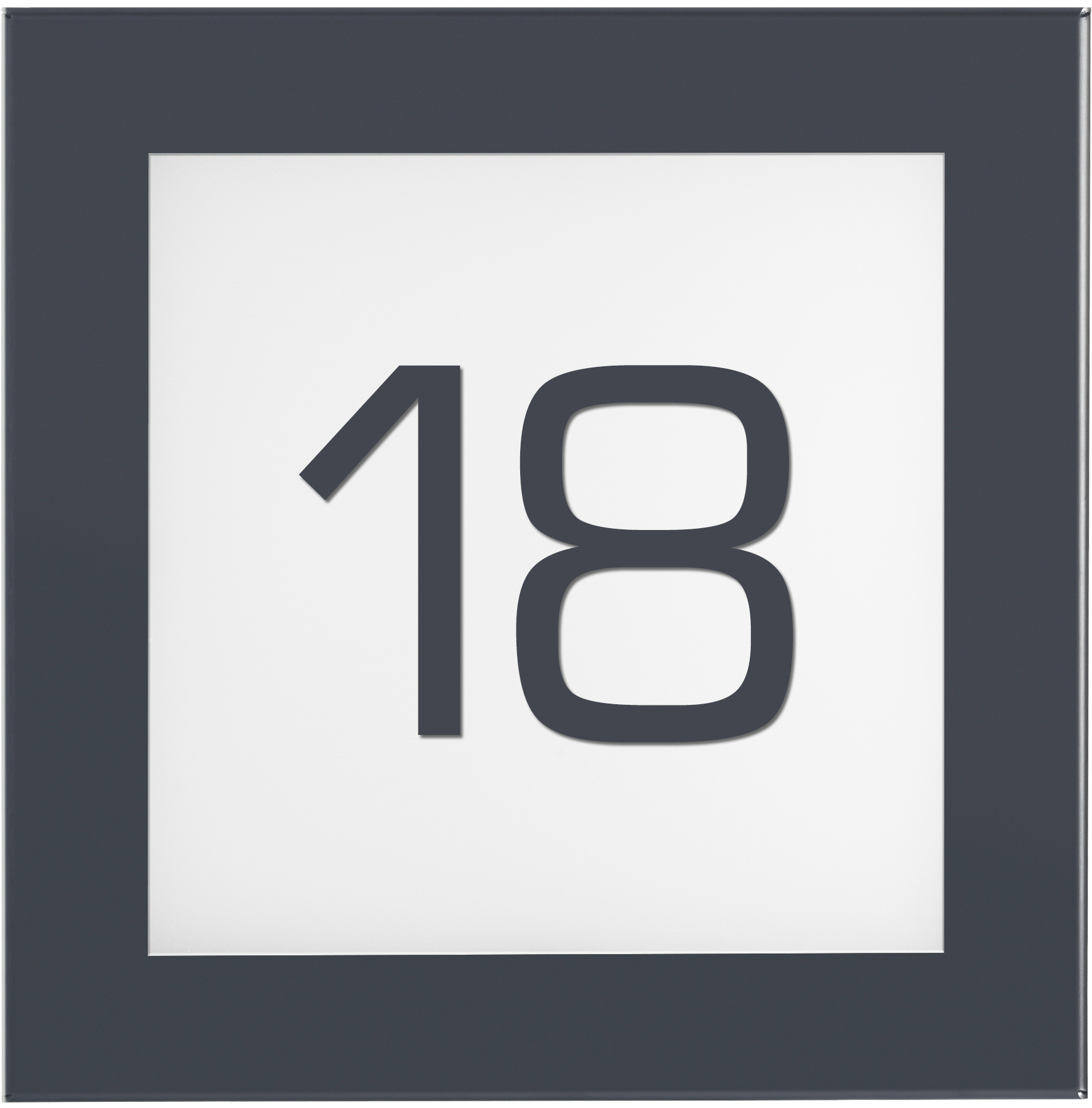 Unsere schlicht aber dennoch elegante Außenwandleuchte Aqua Legendo Mini mit LED-Technik aus Edelstahl in RAL 7016 anthrazitgrau pulverbeschichtet zeichnet sich besonders durch ihre quadratische Form aus. Die Leuchte sorgt nach 3 Richtungen für eine optimale Beleuchtung. Dadurch dass eine weiße lichtdurchlässige Folie in das Opalglas eingearbeitet ist, sind die Leuchtmittel nicht sichtbar. Ein fluoreszierendes Licht ist gewährleistet. Die Hausnummernziffern haben eine Höhe von 7,5 cm